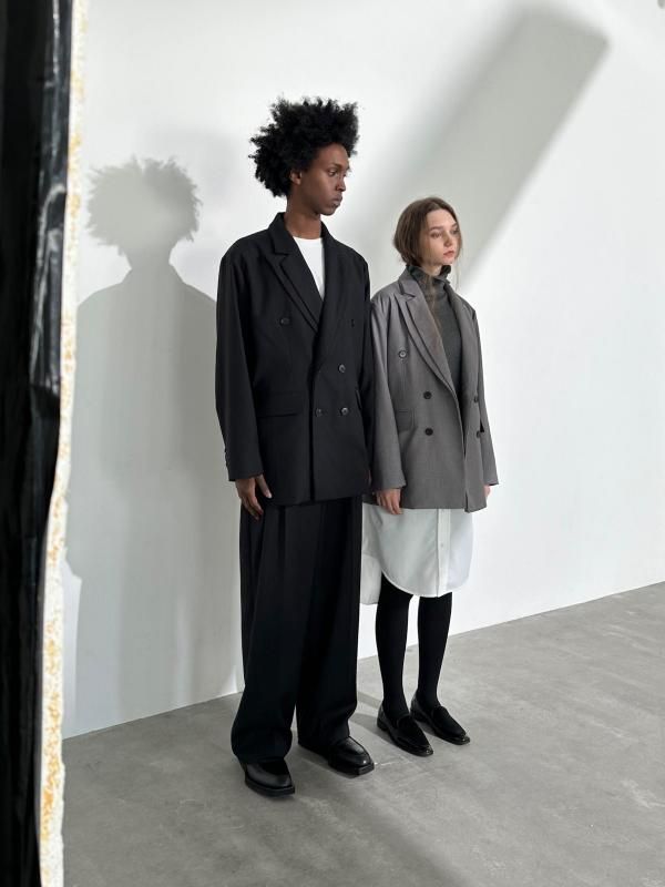 [EKAT (UNISEX)] LAPEL LAYERED JKT / GRAY