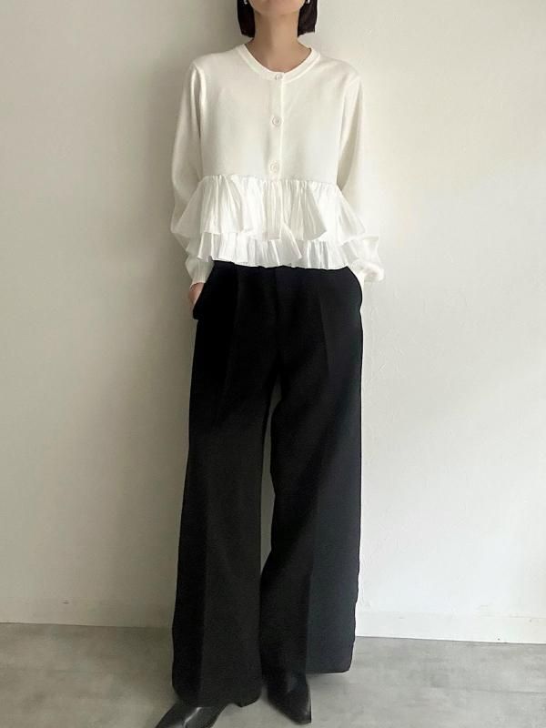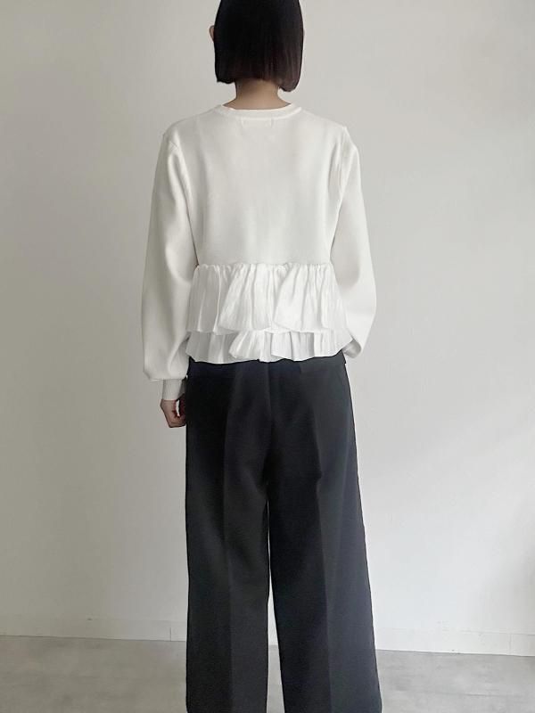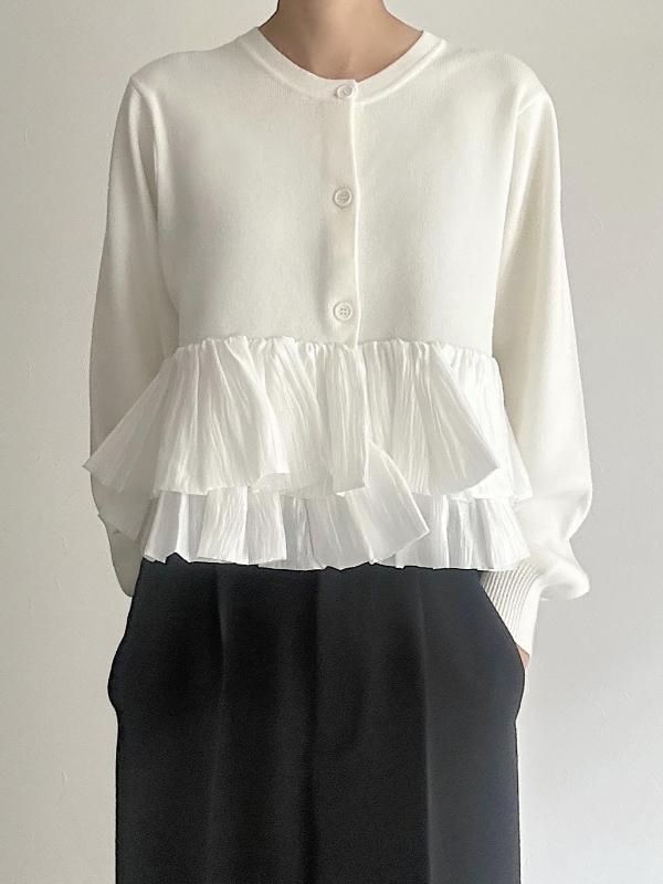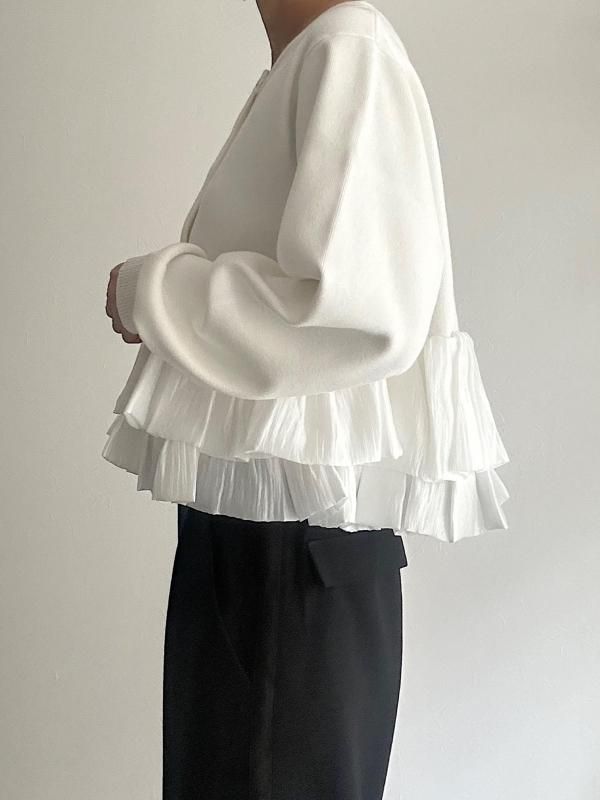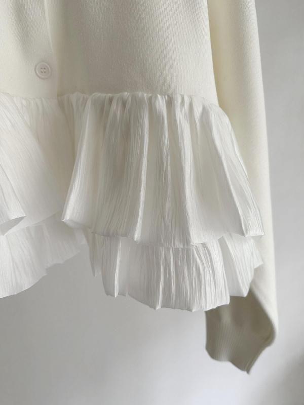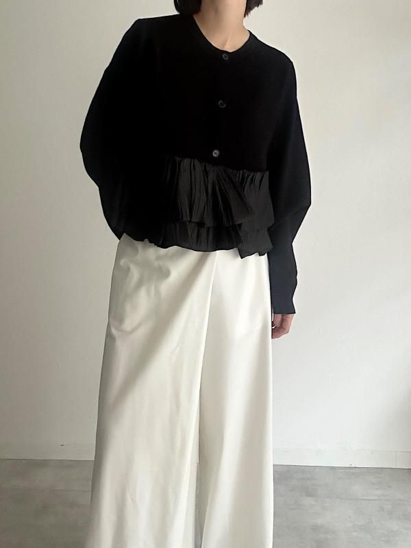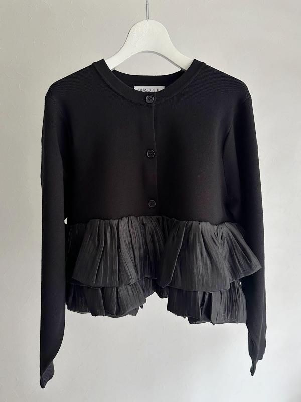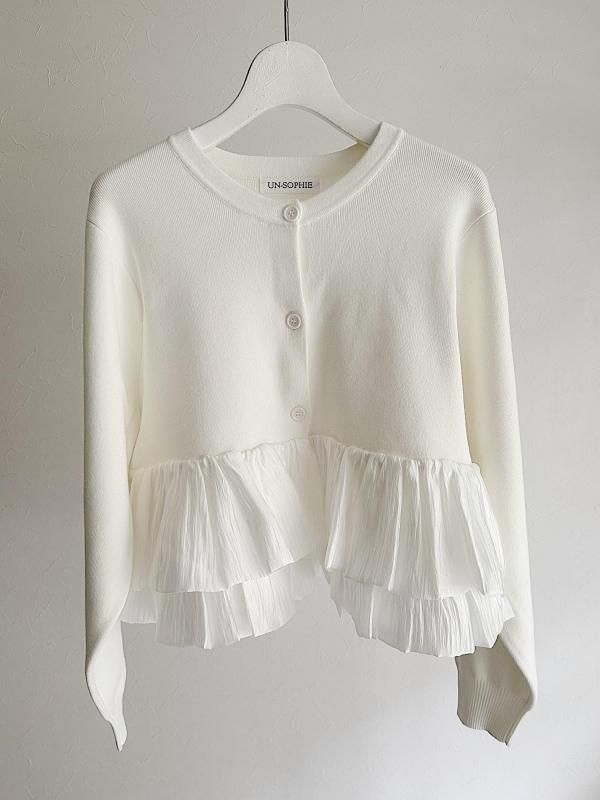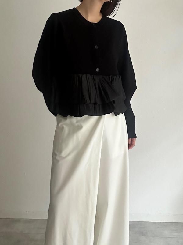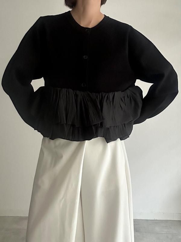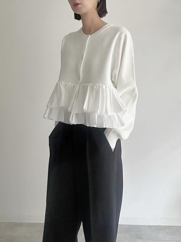 ウェストのペプラムデザインが特徴的なニットカーディガン。