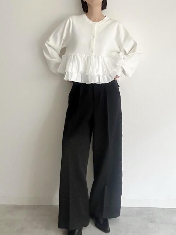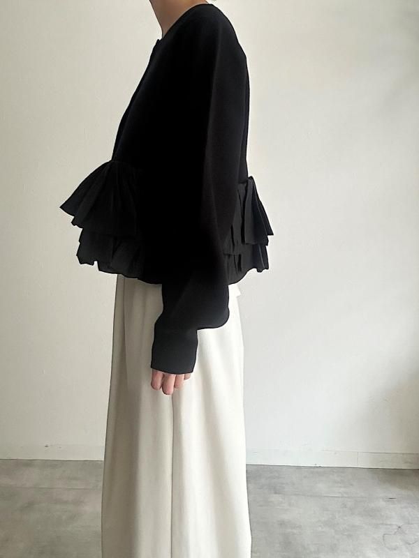 デコラティブなペプラムデザインで甘すぎないモードな印象に仕上がりに。